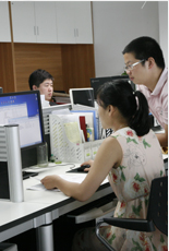 浙江人民美術(shù)出版社組織年輕編輯到浙江海虹彩色印務(wù)有限公司現(xiàn)場(chǎng),借大型圖集《中國(guó)文化史跡》十二卷開(kāi)印之機(jī),向年輕編輯講解傳授彩色、黑白圖像印刷開(kāi)機(jī)時(shí)的調(diào)試看樣技巧。